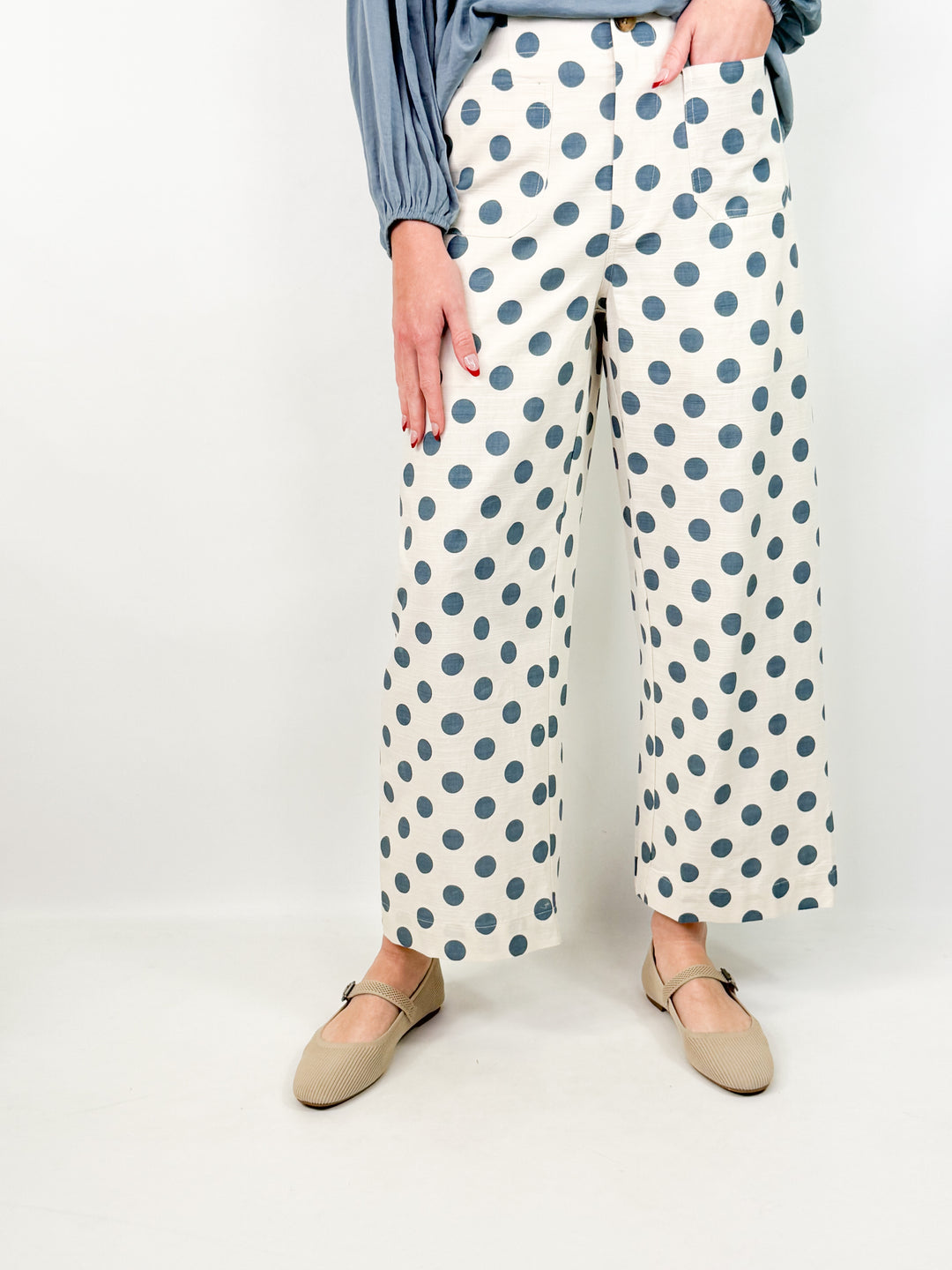 Vivian - Linen Polka Dot Pants (Blue)