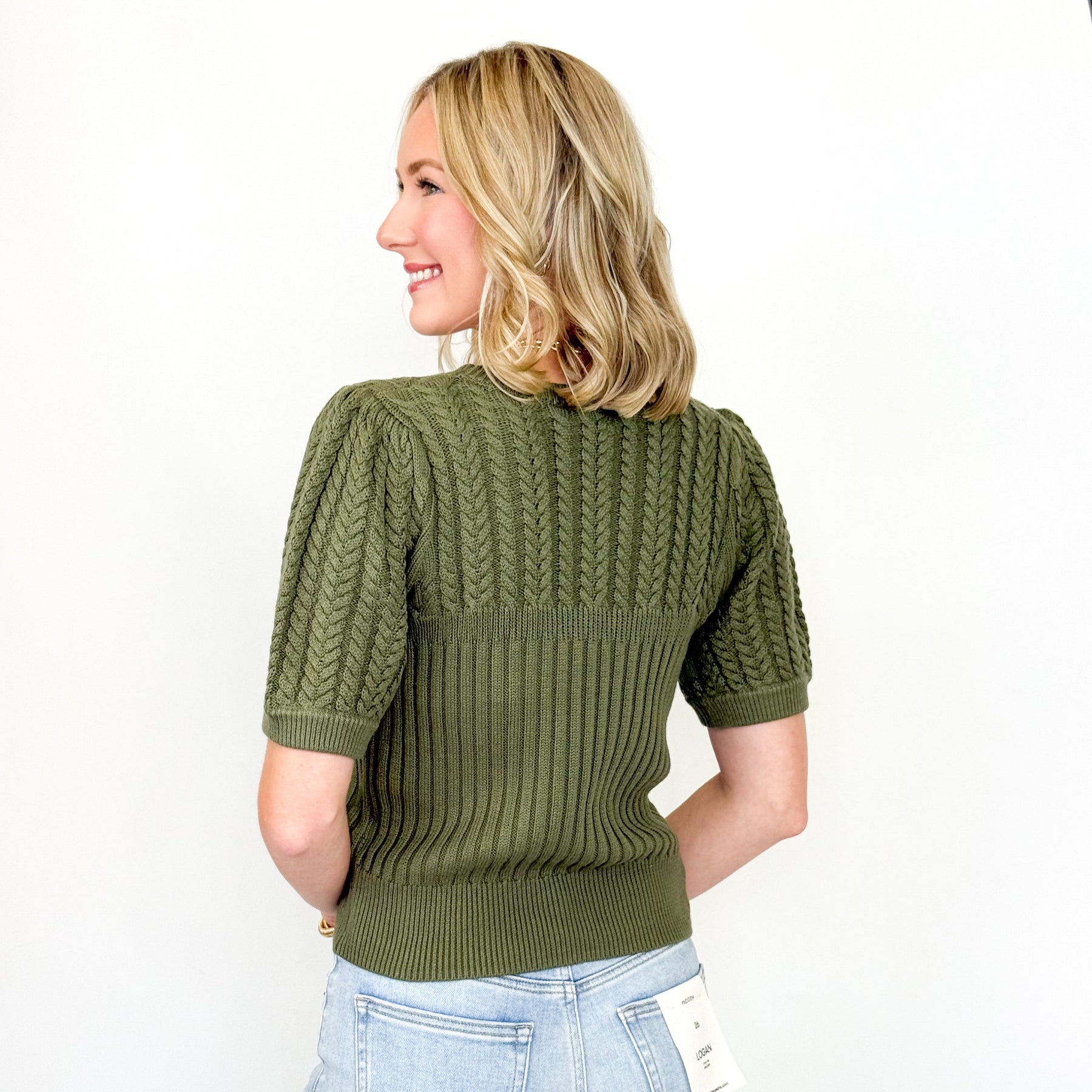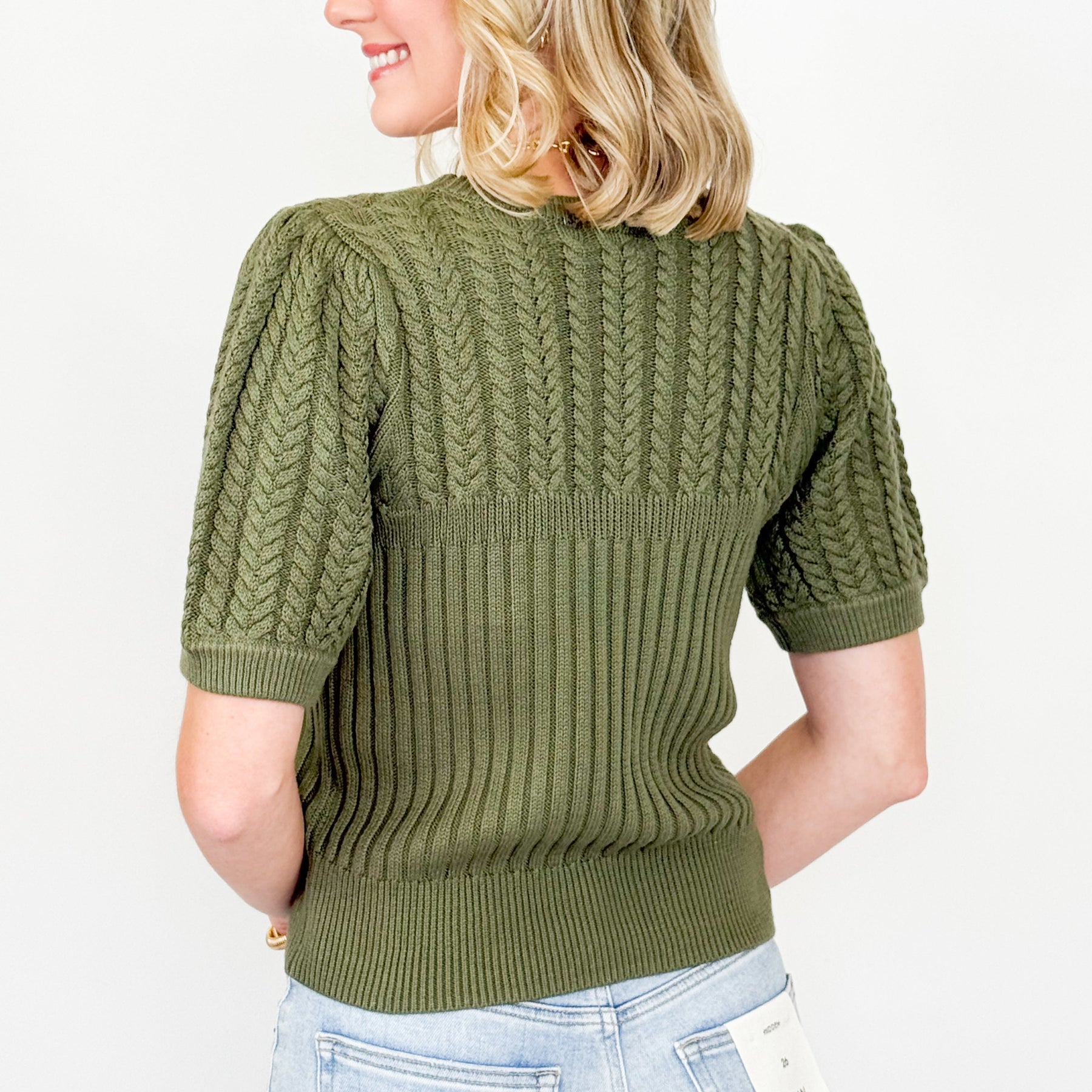 Madison - Puff Sleeve Cable Knit Sweater (Olive)
