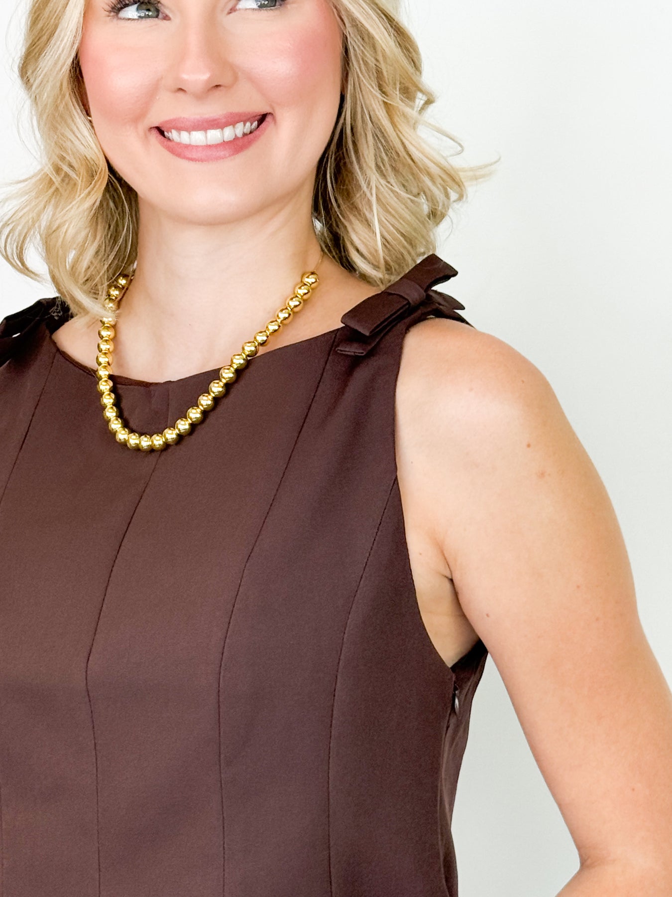 Maria - Boatneck Bow Detail Blouse (Chocolate)