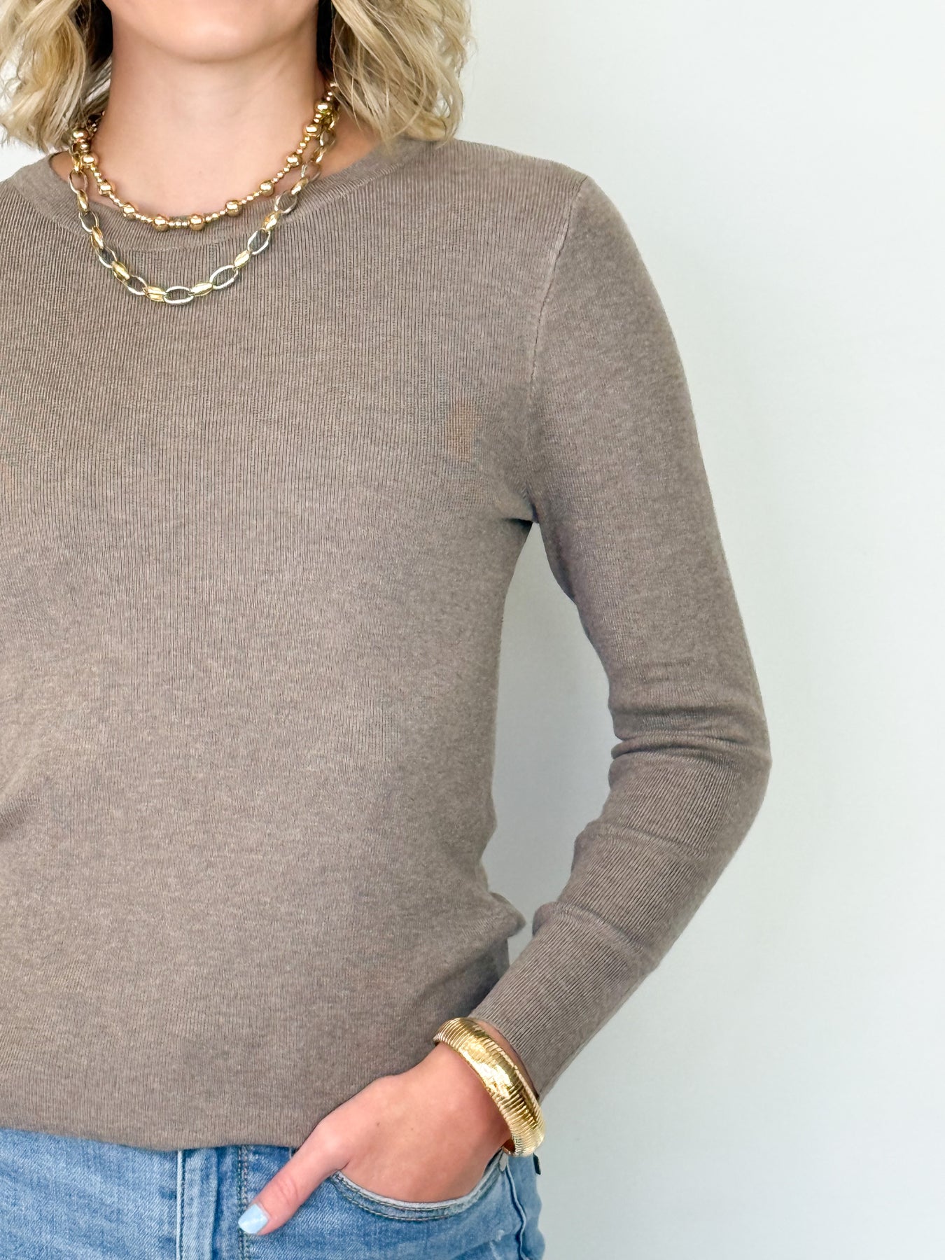 Elevate your wardrobe with the Rylie Mocha Ribbed Long Sleeve Top. Crafted in a rich mocha brown, its ribbed texture adds subtle depth, while the rounded neckline offers a timeless, refined silhouette. Perfect for layering or wearing alone, this top combines comfort with understated elegance for a polished, sophisticated look.