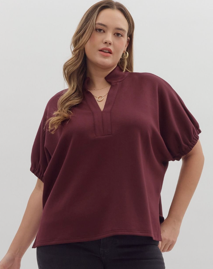 Gretta - V Neck Relaxed Top (Plus Size) - Maroon
