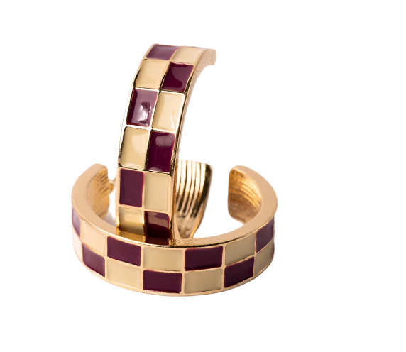 Michelle McDowell - Maroon & Cream Checkered Hoop Earrings