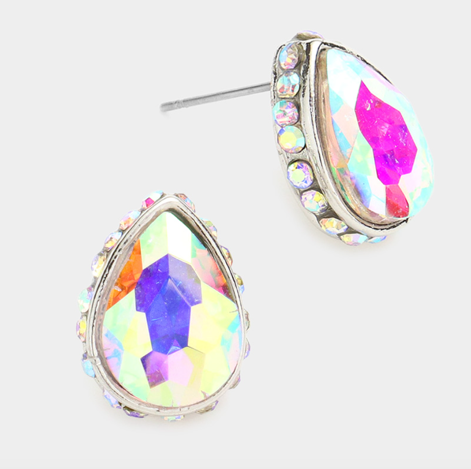 Miley - Rhinestone Teardrop Stud Earrings (AB)