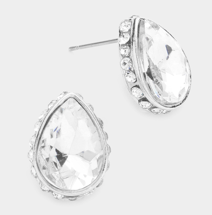 Miley - Rhinestone Teardrop Stud Earrings (Clear)