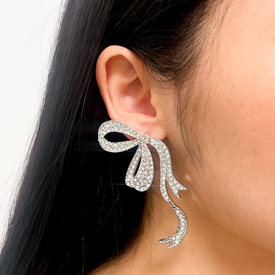 Olivia - Rhinestone Ribbon Earrings