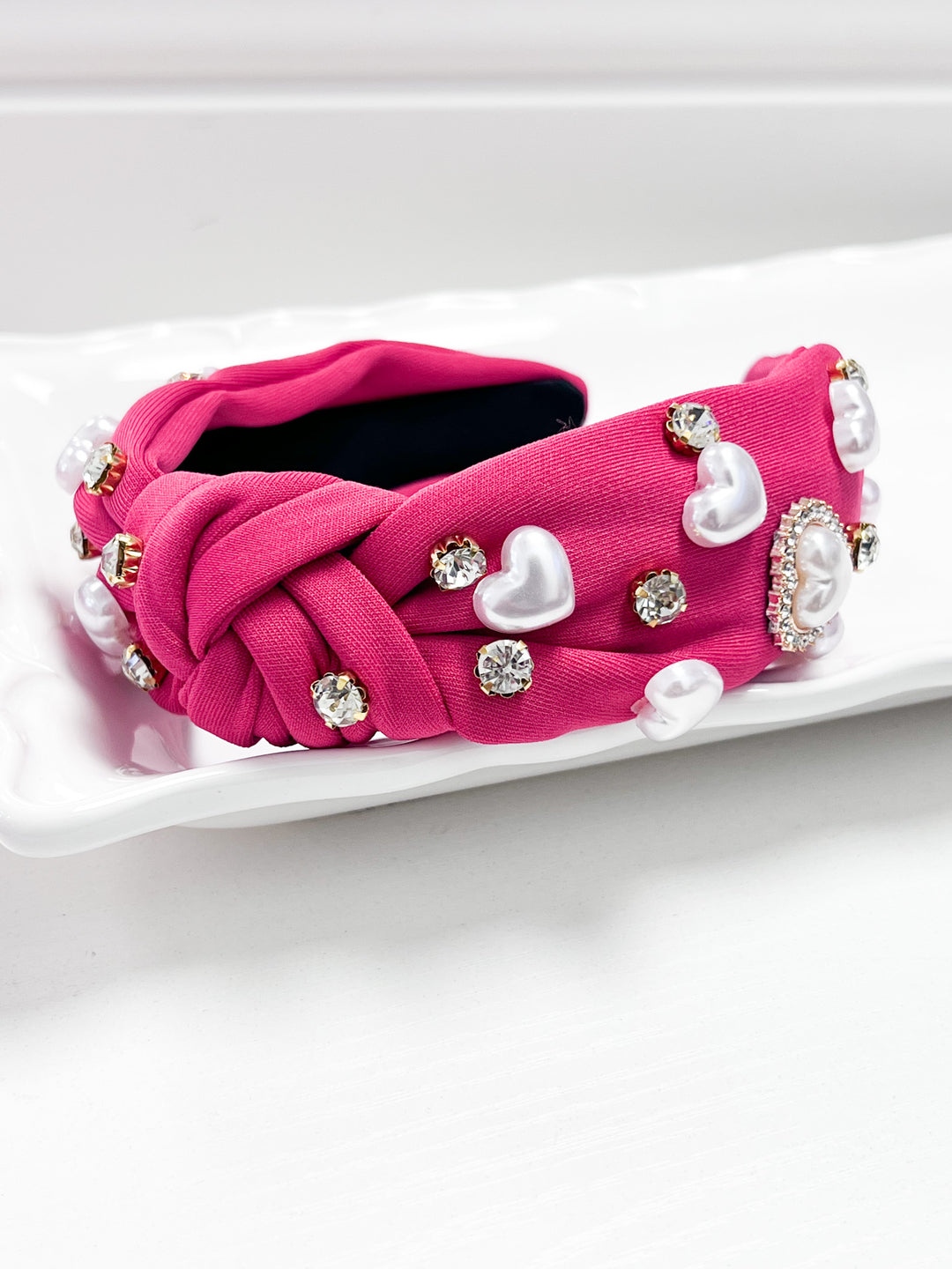 Pearl Heart Headband - Raspberry Pink
