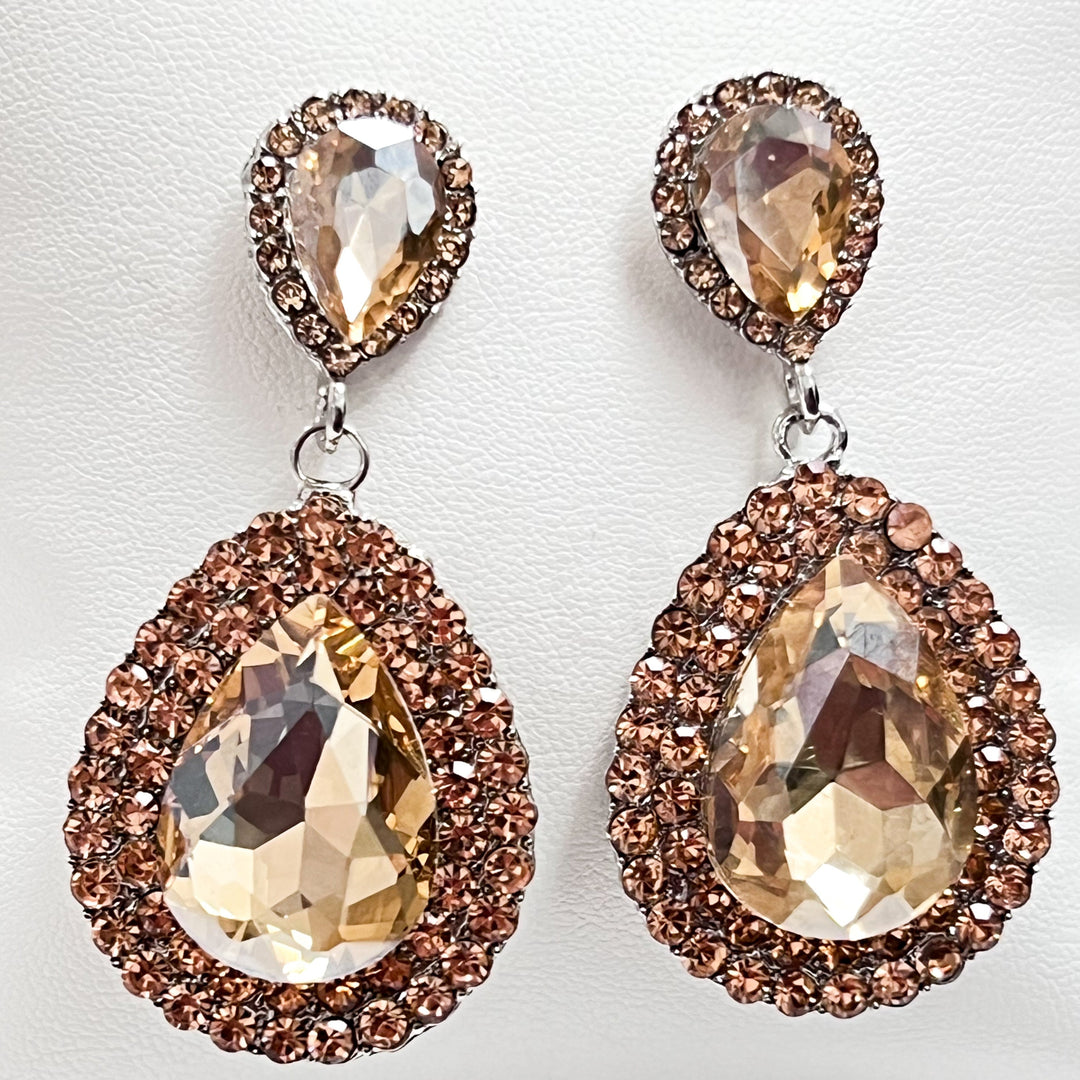 Prissy - Statement Rhinestone Earrings (AB Light Topaz)