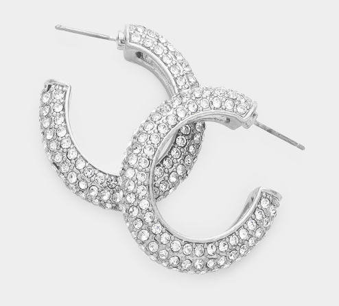 Remi - Rhinestone Oval Hoop Earrings (Silver)