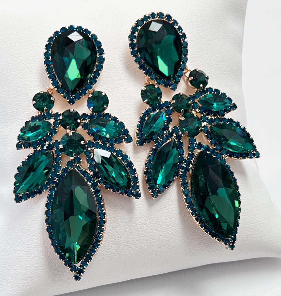 Sally - Rhinestone Statement Earrings (Emerald)