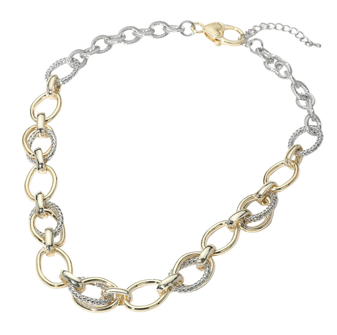 Sophie - Two Tone Textured Chunky Oval Link Necklace