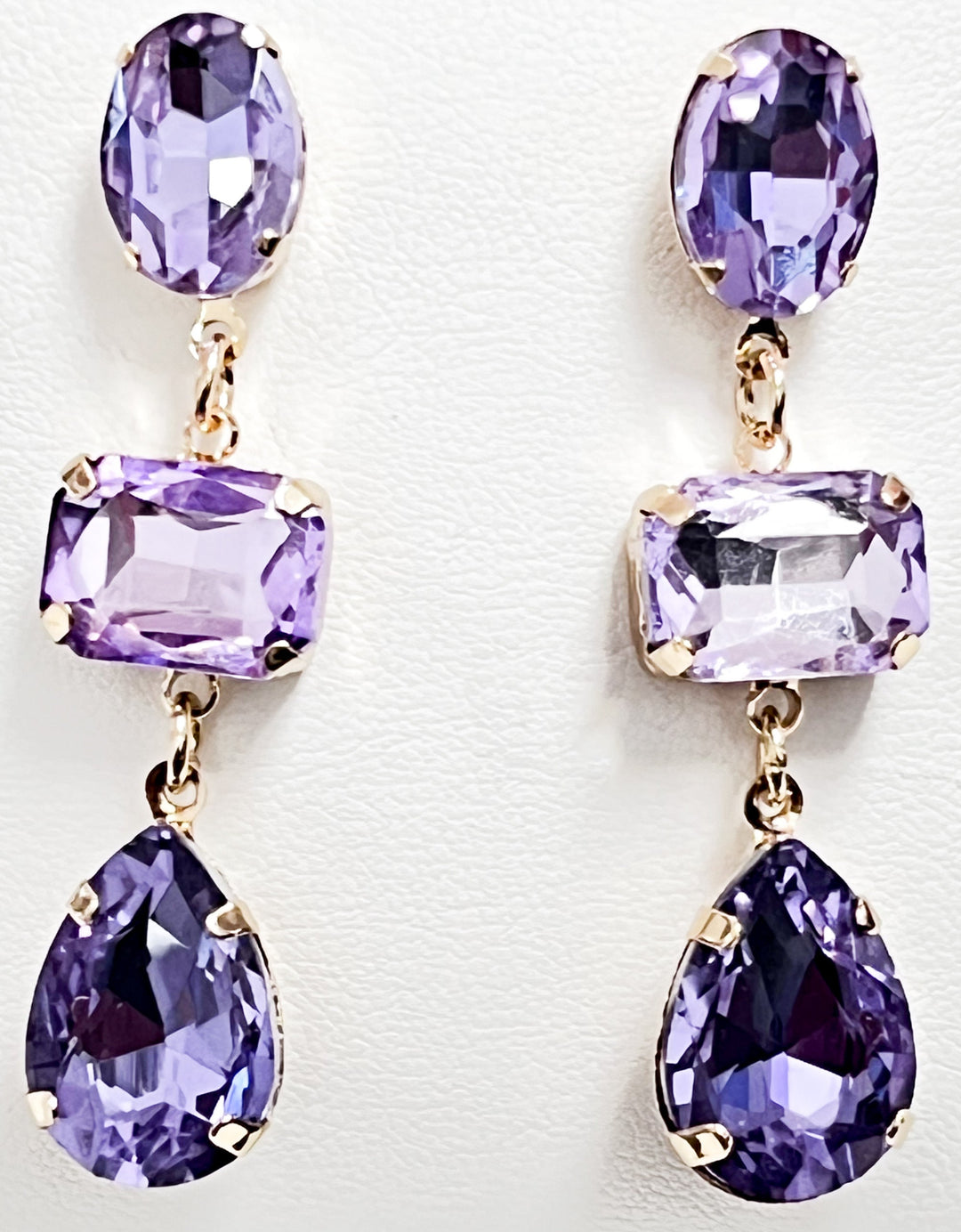 Stella - Tiered Rhinestone Statement Earrings (Lavender)