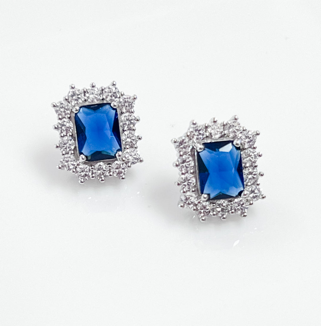 Suzette - Rhinestone Stud Earrings (Sapphire)