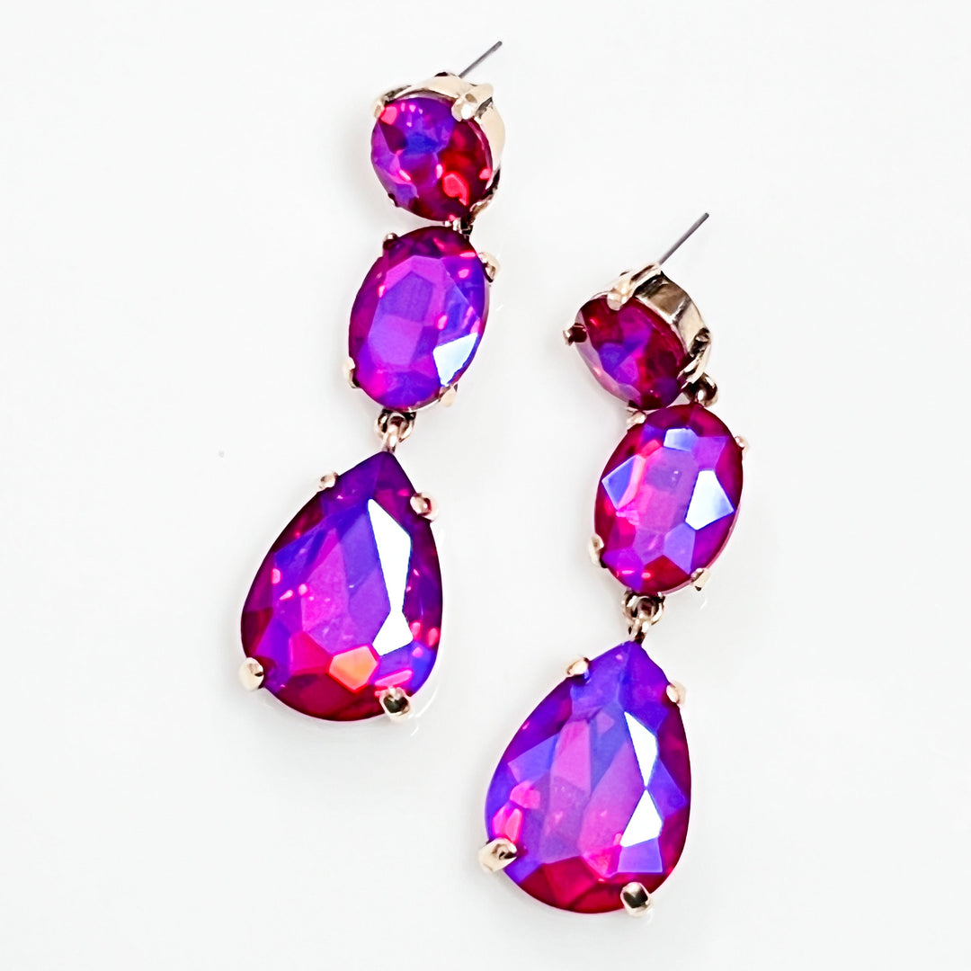 Wendy - Tiered Rhinestone Statement Earrings (Iridescent Fuschia)