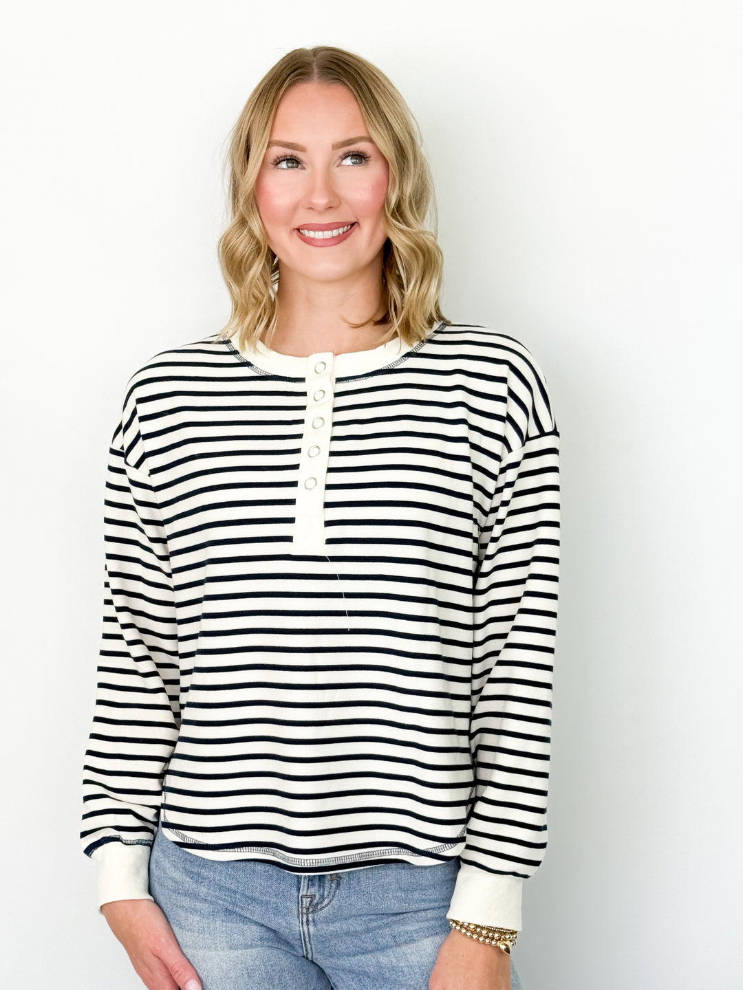 Black Friday Promo - Striped Henley Knit Top