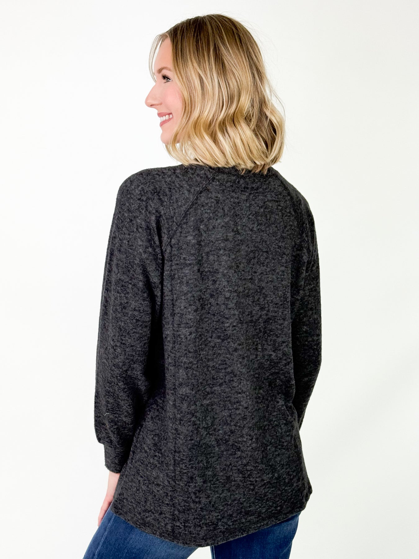 Britt - Brushed Henley Long Sleeve Top (Black)