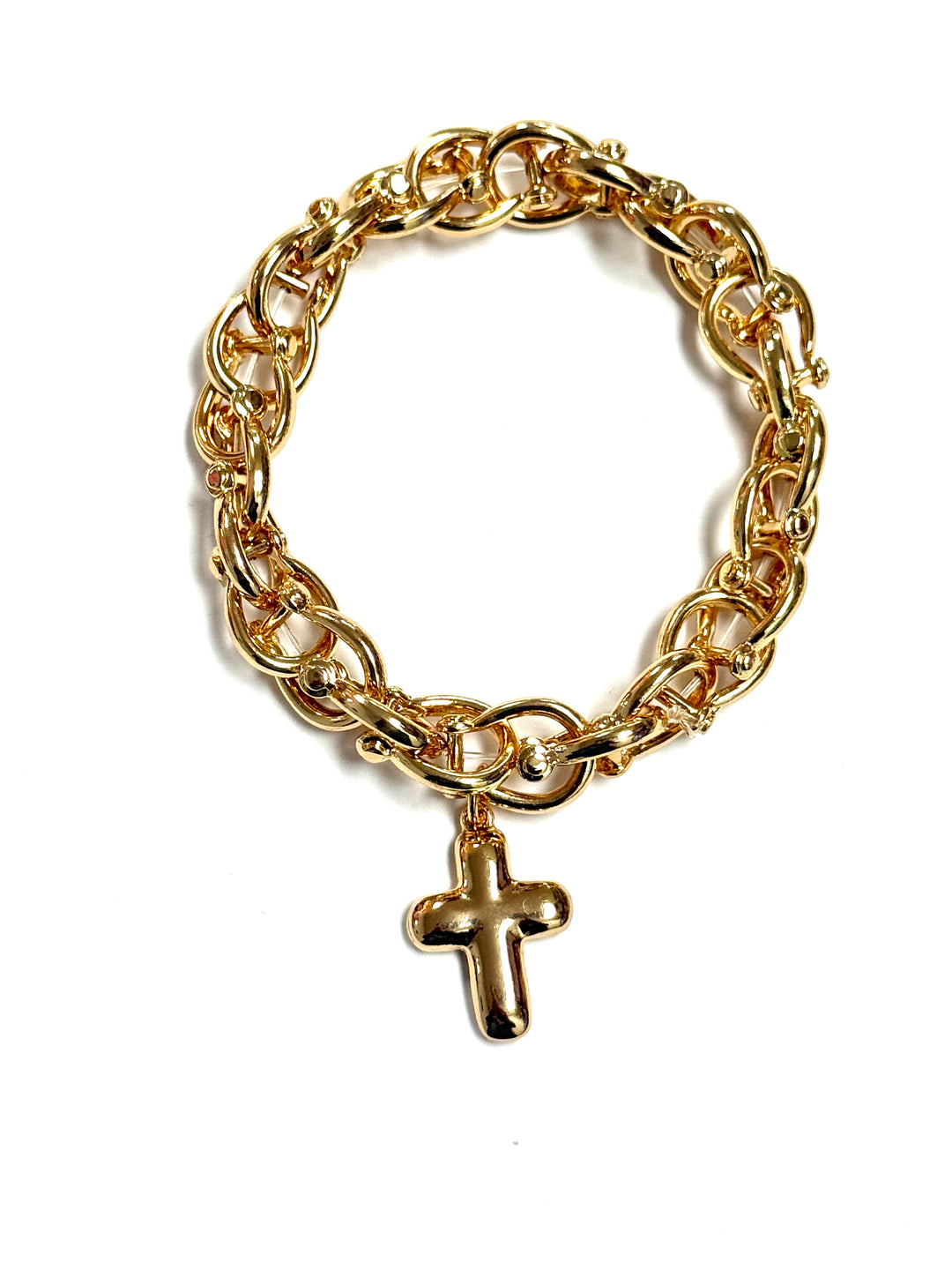 Kelsea - Elasticized Gold Horse Bit Cross Bracelet