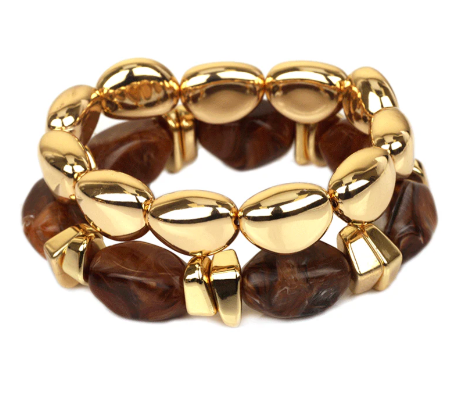 Hensley - Chunky Beaded Bracelet Set of 2 (Brown)