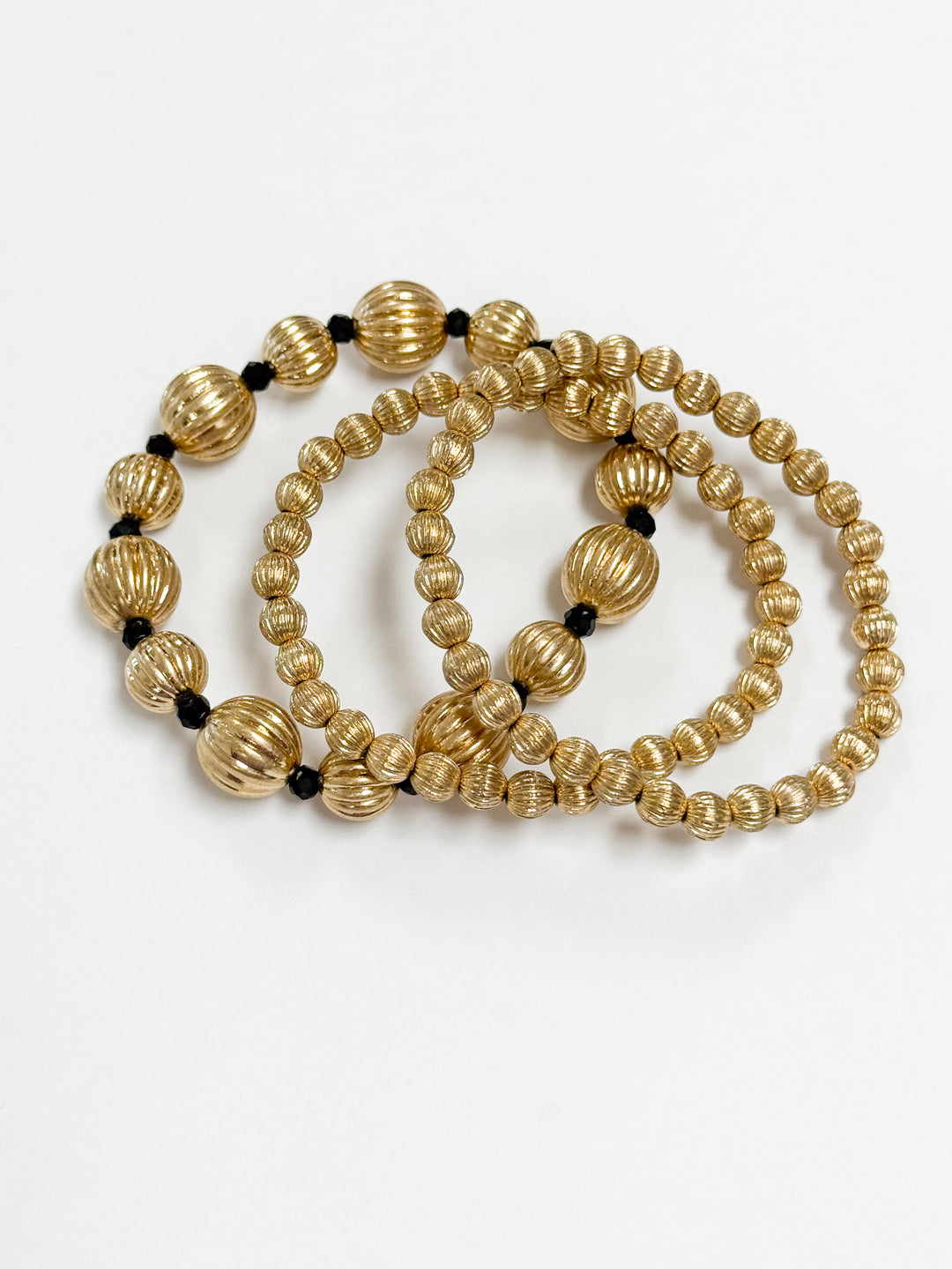 Isla - Gold Beaded Stretch Bracelets (Black)