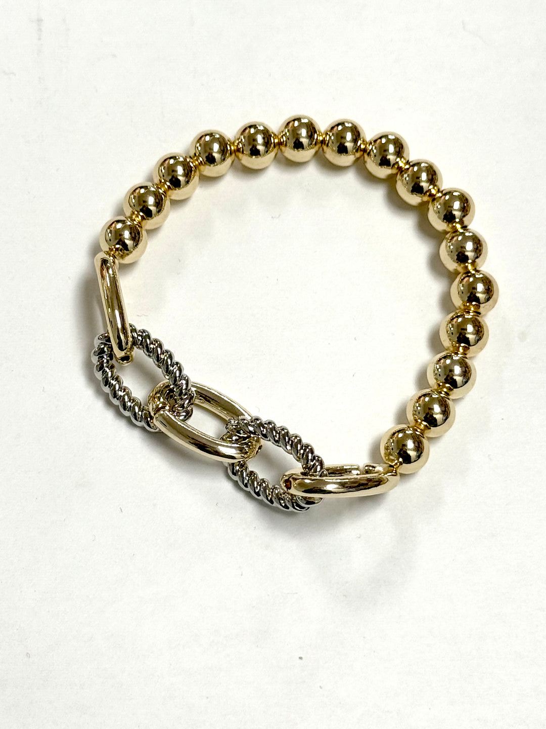 Allison - Elasticized Chain Link Bracelet (Brushed Two Toned)
