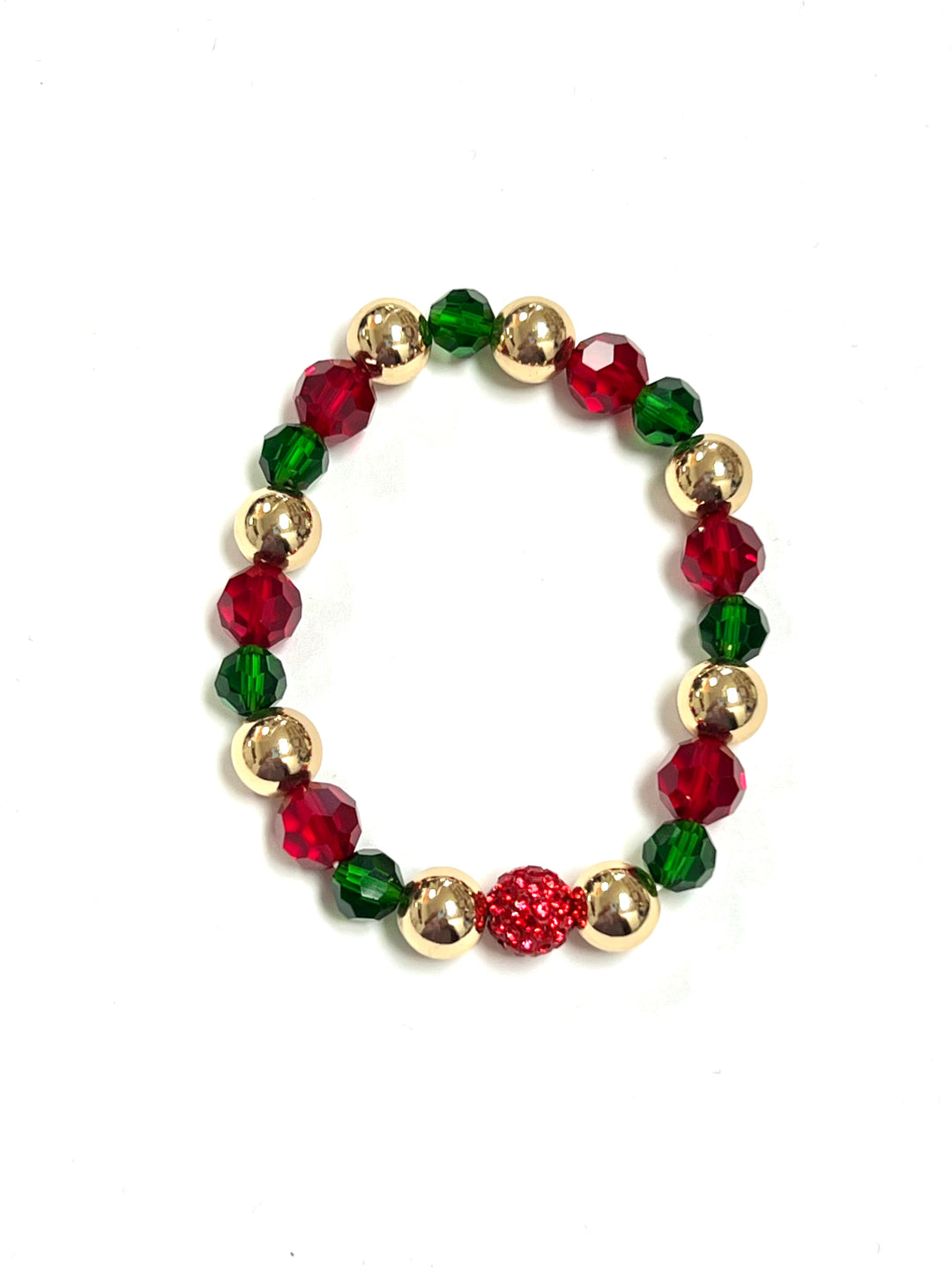 Blitzen - Gold, Red, & Green Beaded Bracelet