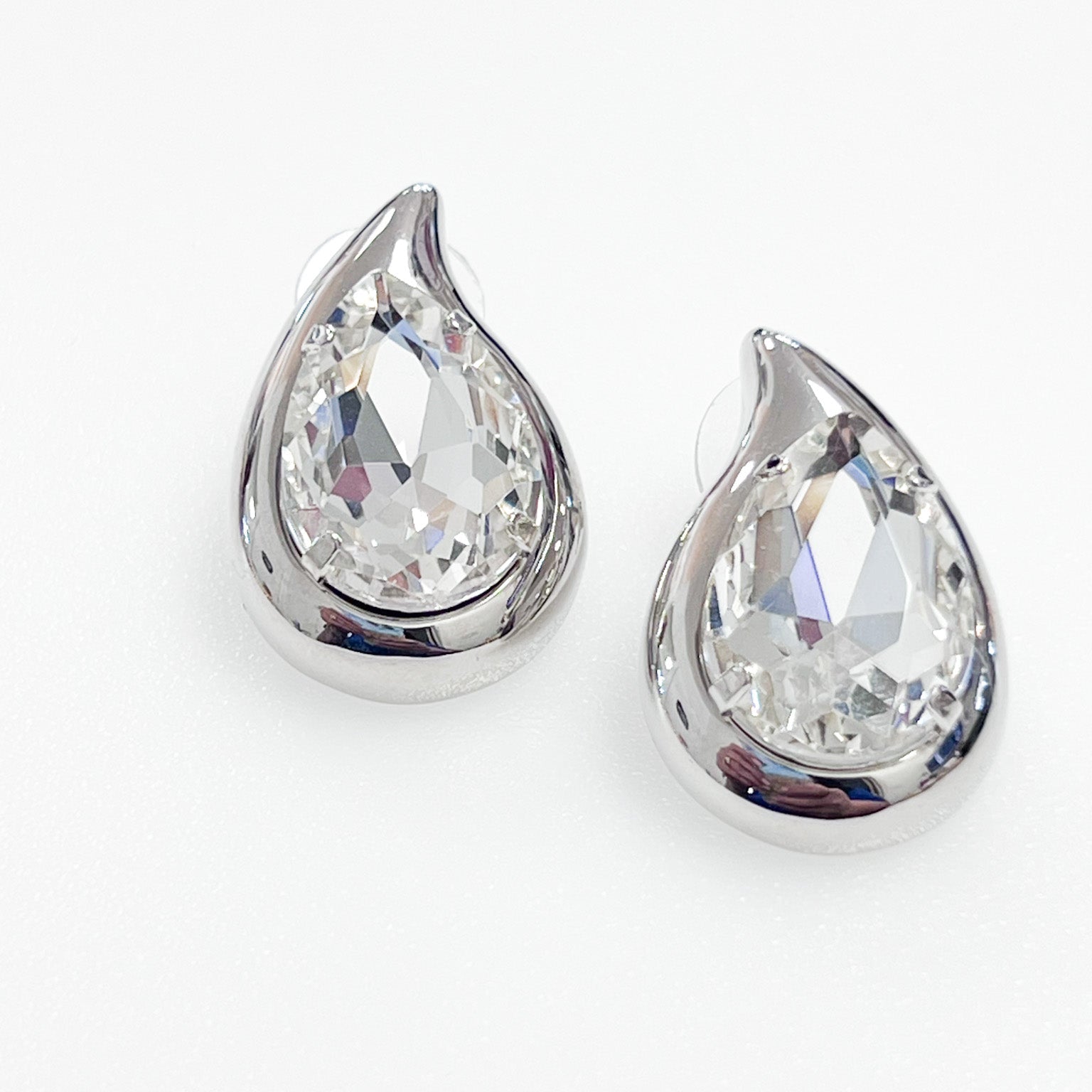 Piper - Clear Teardrop Chunky Stud Earrings (Silver)