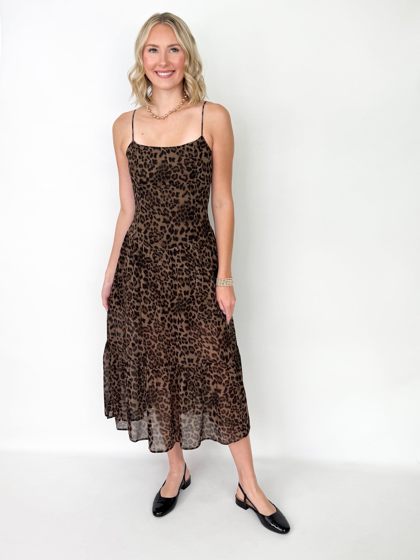 Bailey - Leopard Spaghetti Strap Midi Dress