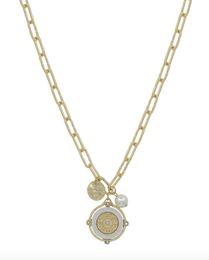 Sophie - Two Tone Textured Chunky Oval Link Necklace