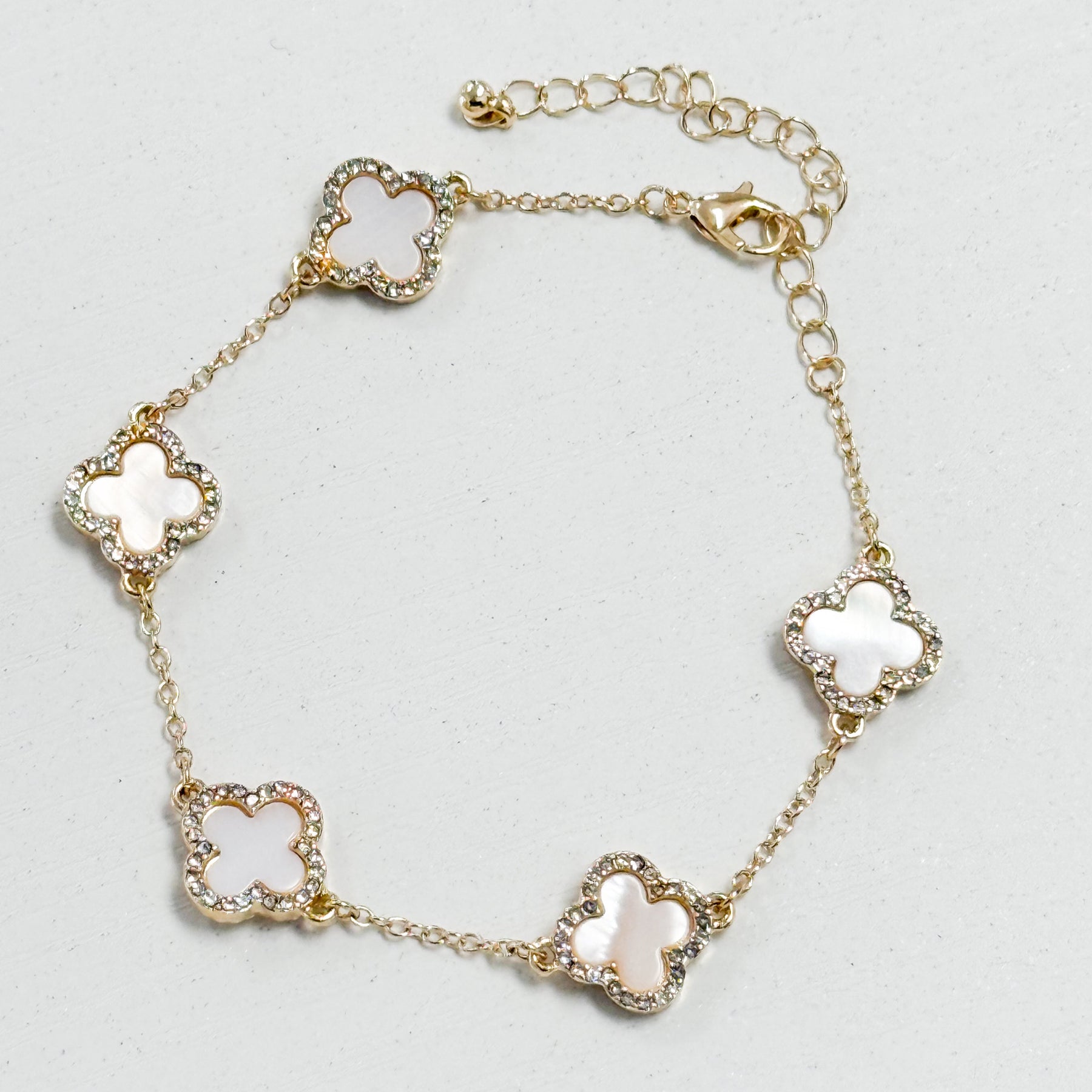 Brighten your day with the Christine Gold Opal Clover Bracelet! This playful piece features sparkling clovers edged in rhinestones, adding a dash of shimmer to your look. With a 7-inch length plus a 2.5-inch extender, it’s perfect for layering or wearing solo to catch every eye.