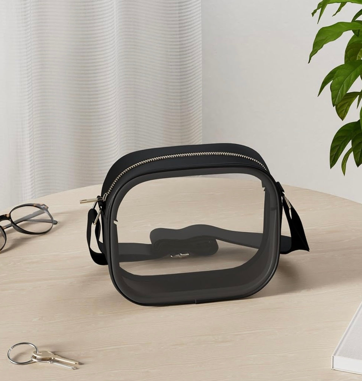 Elevate your game-day style with the Chelsea Black & Clear Stadium Bag. Featuring a sleek black and transparent design, this bag offers both fashion and function. Its adjustable black strap ensures a comfortable fit, while gold hardware adds a touch of elegance. Compact yet spacious at 8 x 3 x 6.5 inches, it’s perfect for carrying essentials securely and in style.