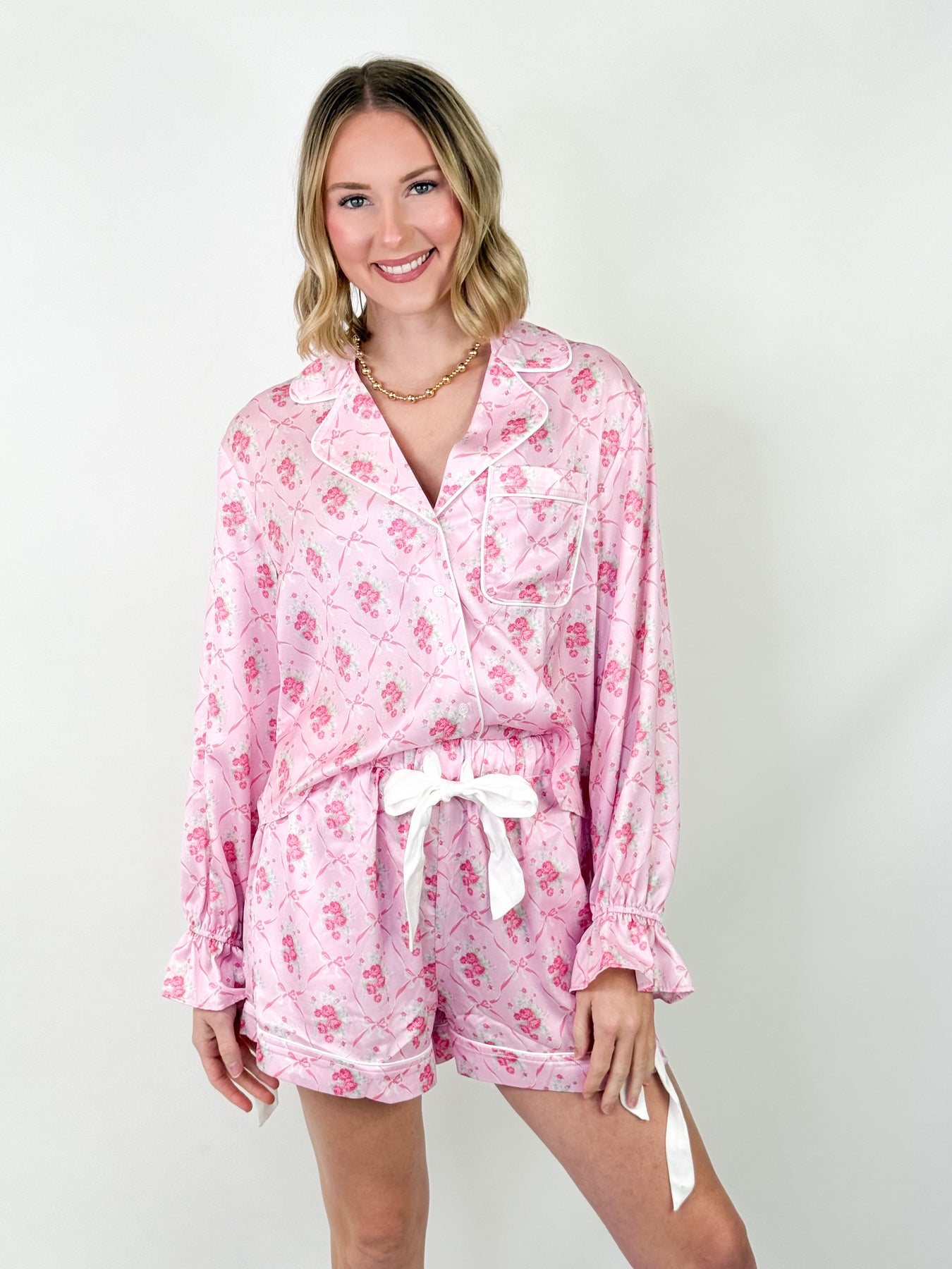 Lilli - Pink Satin Bow Pajama Set