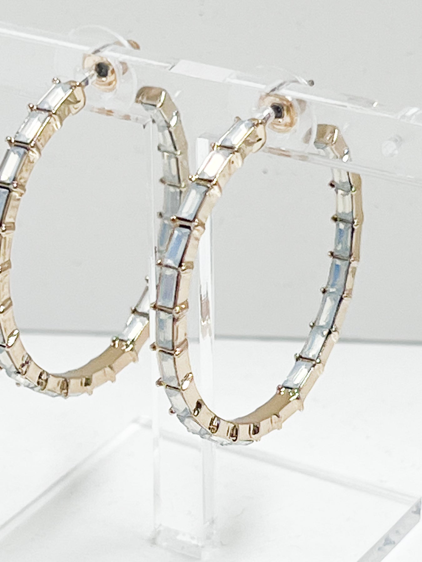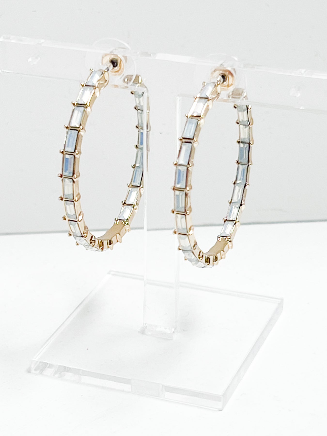 Blair - Baguette Rhinestone Hoop Earrings (Iridescent)