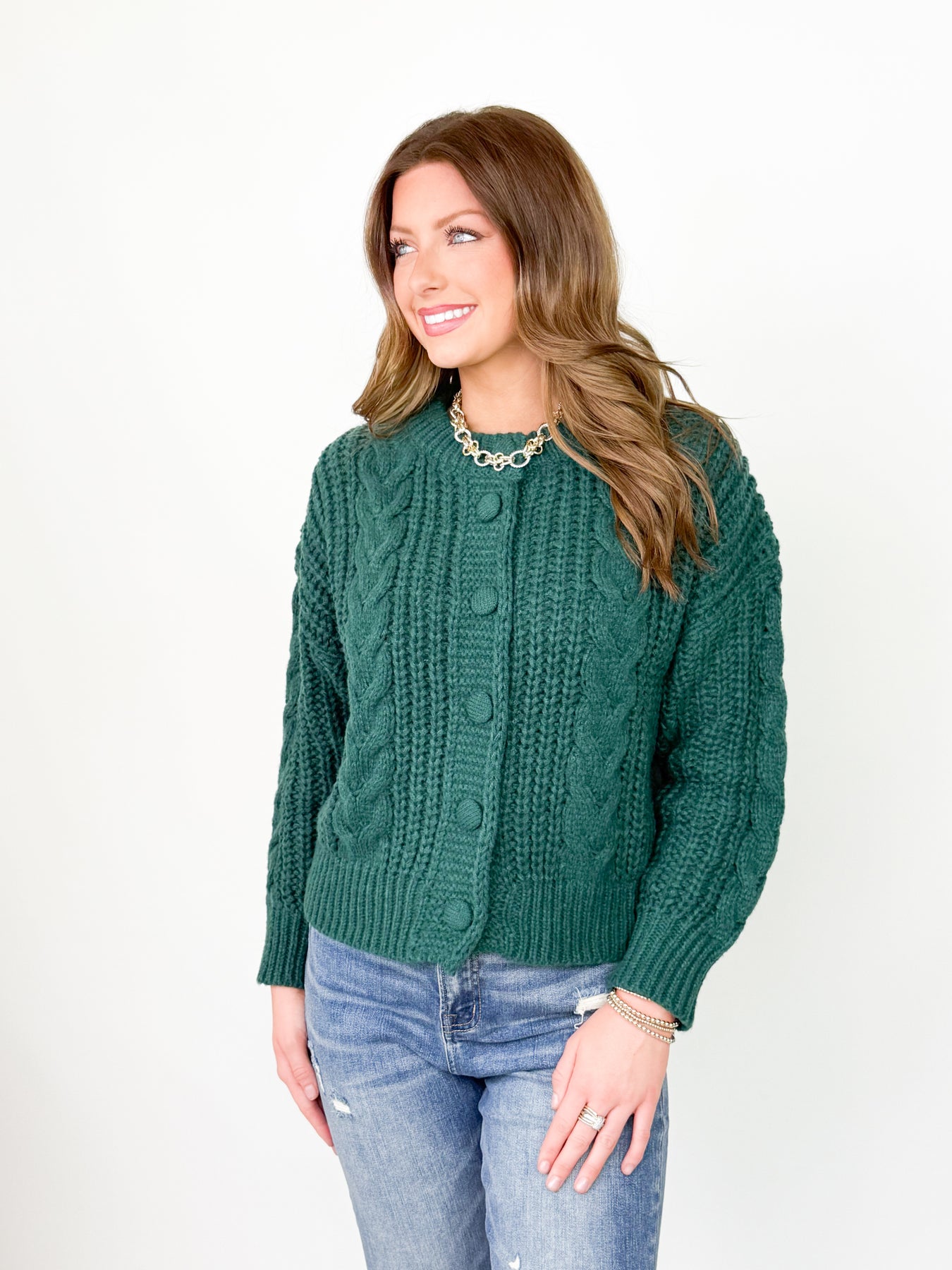 The Madison cable knit cardigan delivers timeless sophistication through its substantial construction and refined design. Crafted from thick, textured cable knit fabric, this oversized long-sleeve piece layers effortlessly over your everyday wardrobe while providing genuine warmth and durability. The relaxed fit accommodates layering and movement, making it equally suited for casual weekends or polished office settings. Quality cable knit detailing creates visual interest and structural integrity that withstands regular wear. An essential investment piece that transcends seasonal trends and pairs seamlessly with virtually any outfit in your collection.