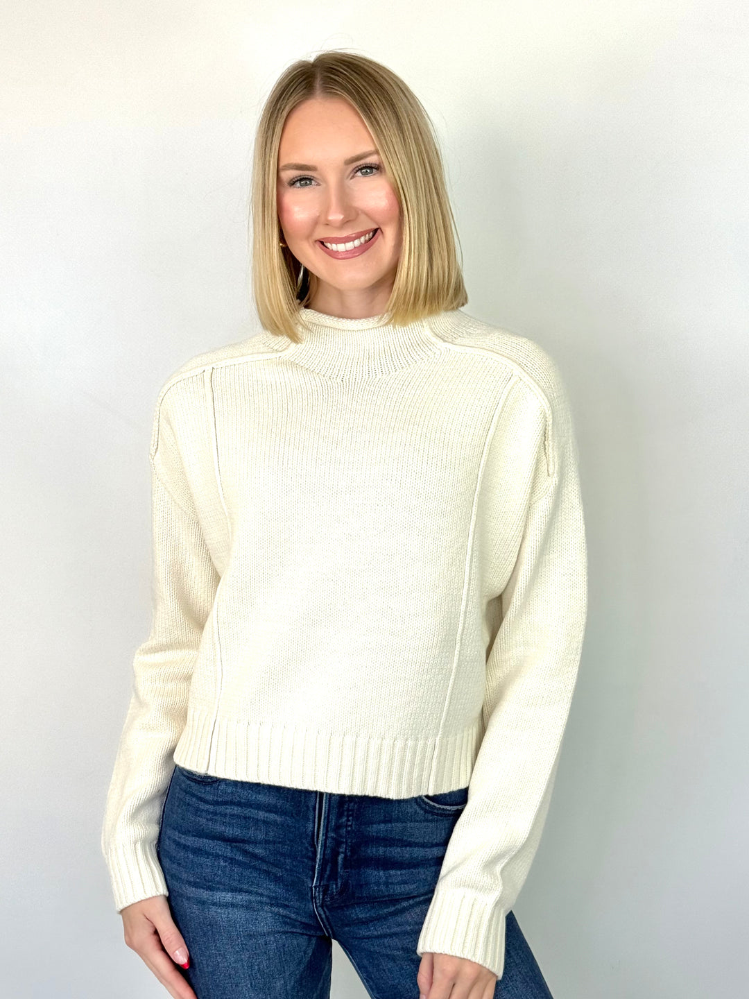 Michele - Cream Mock Neck Knit Sweater