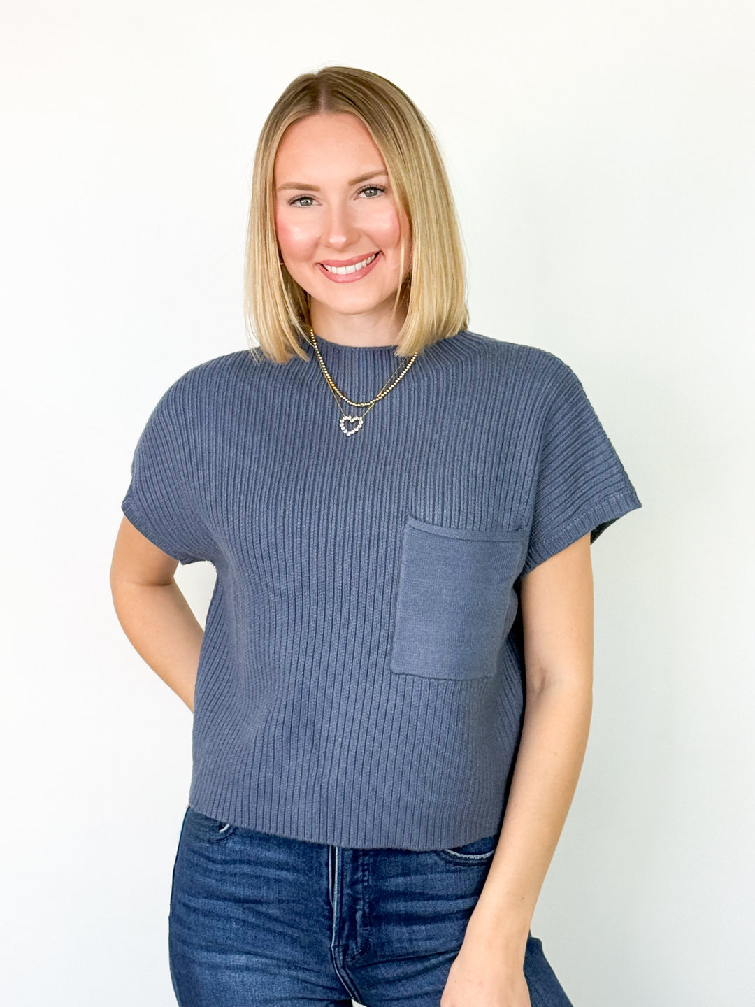 Sandra - Mock Neck Knit Top (Denim Blue)