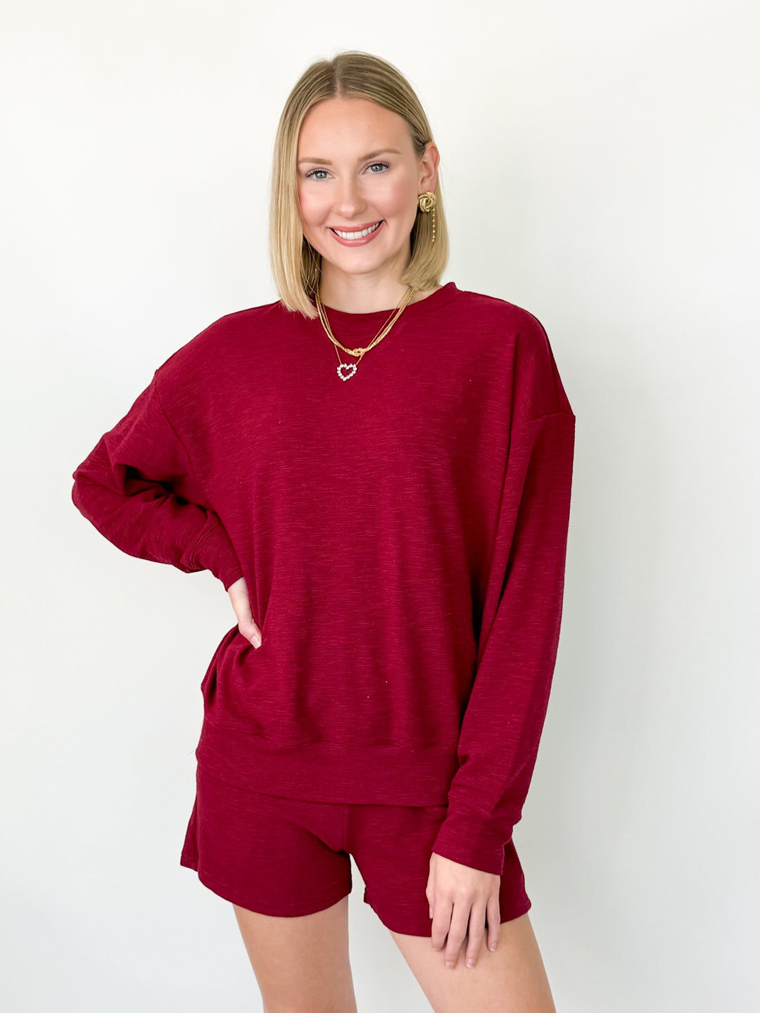 Mallorie - Pullover & Short Set (Maroon)