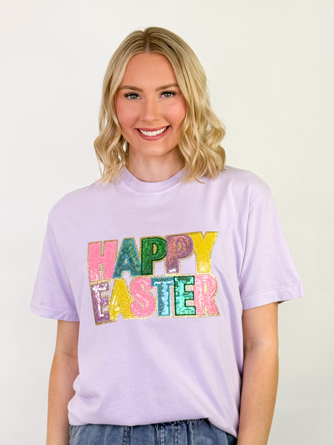 Happy Easter Sequin Patch Graphic Tee (Lavender)