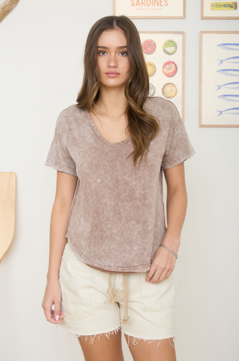 Lena - Scoop Neck Short Sleeve Top (Cocoa)