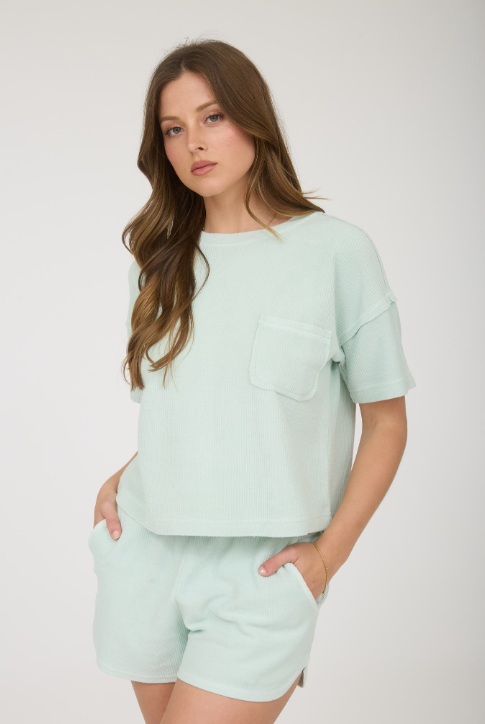 Millie - Ribbed Pocket Short Sleeve Tee (Dusty Mint)