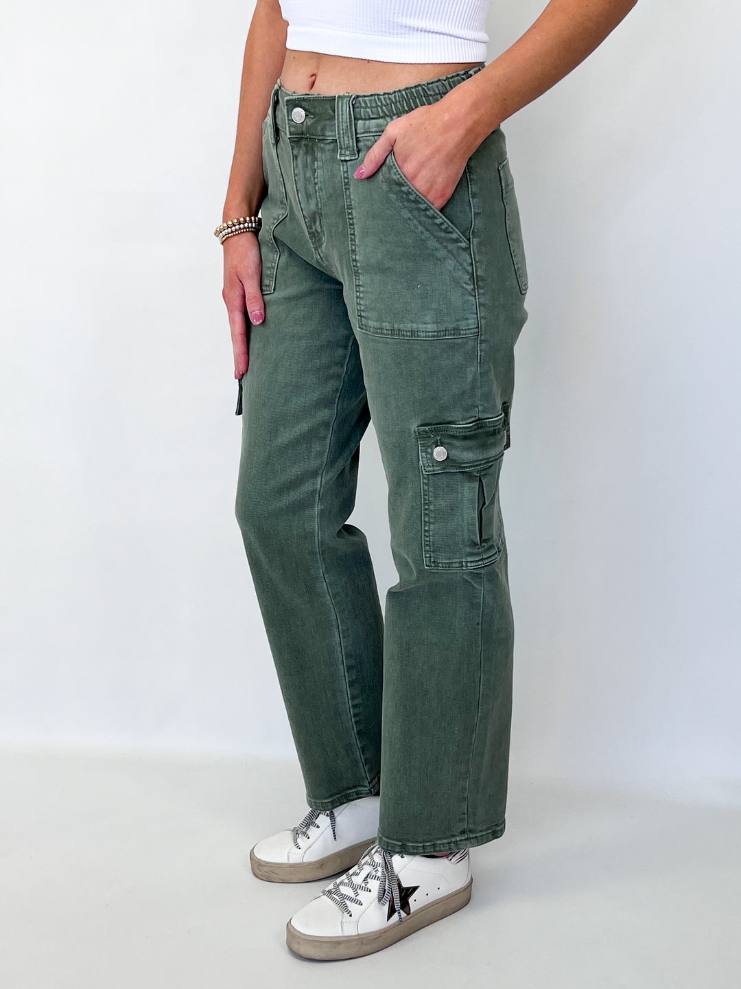 Dixie - High Rise Straight Leg Cargo Jeans (Army Green)