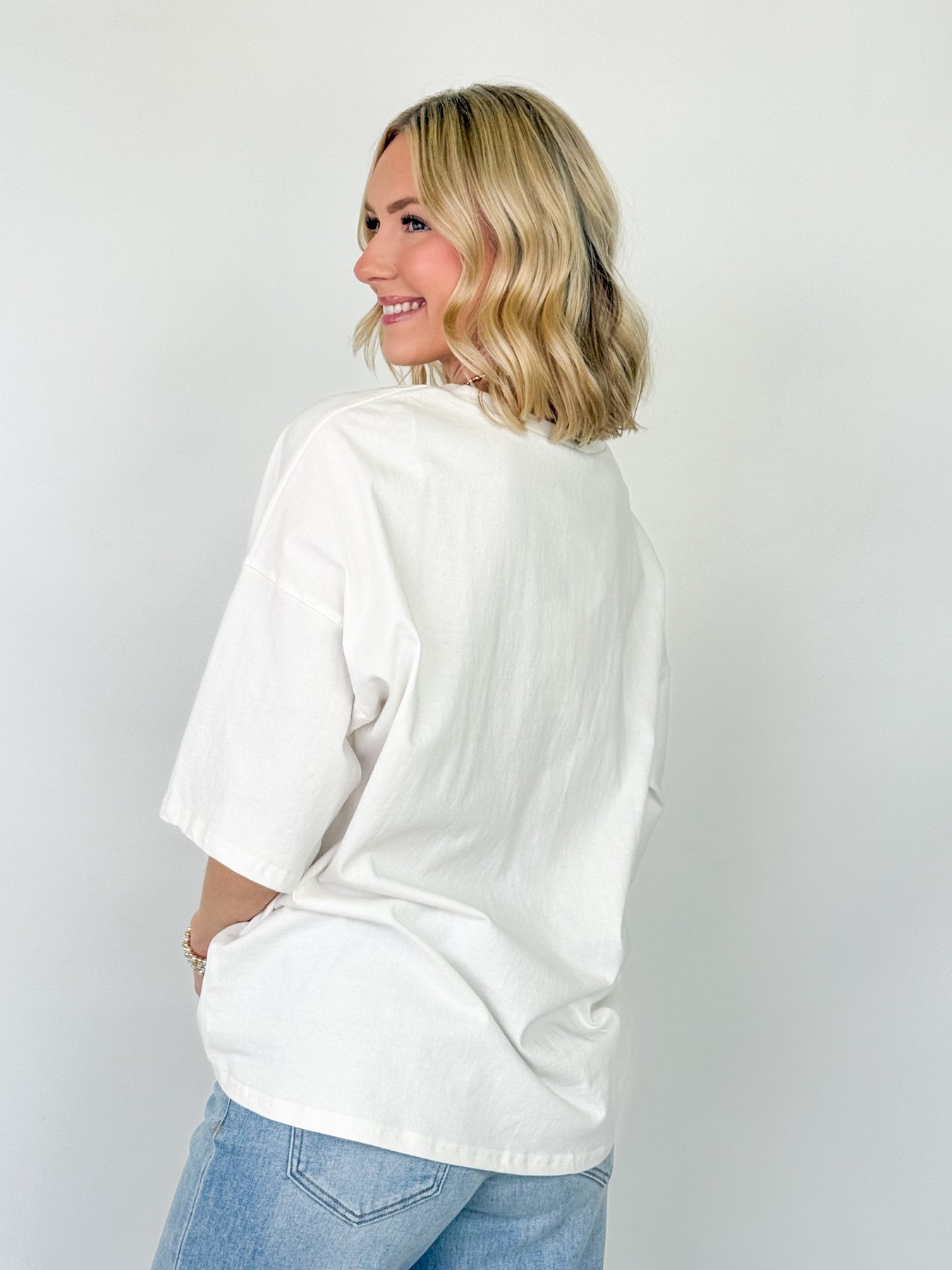 Rock and roll in style with the Andrea Rolling Stones oversized graphic tee! This white tee features a bold checkered design with the iconic Rolling Stones logo, making it the perfect addition to any music lover's wardrobe. And with its licensed status, you can confidently show off your love for the Stones. Get ready to rock on!