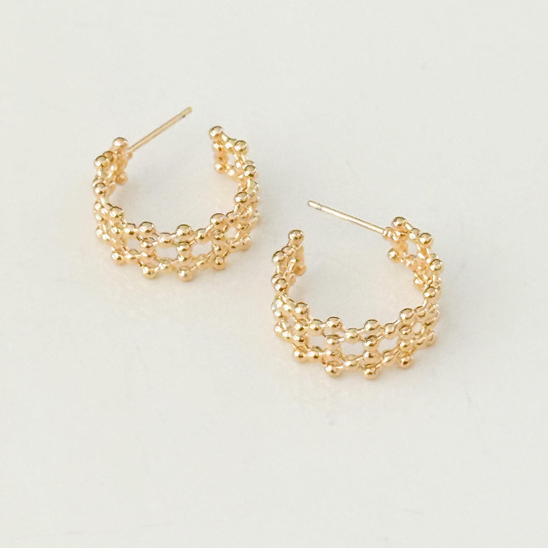 Elevate your look with the Bella Gold Lattice Hoop Earrings, featuring an intricate lattice design that adds refined texture and depth. Crafted with a polished gold finish and secure post backs, these earrings offer both elegance and comfort, perfect for enhancing any sophisticated ensemble.