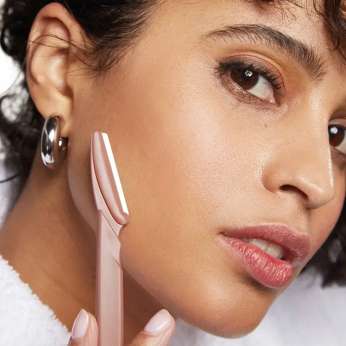 The KITSCH dermaplaner gently exfoliates facial skin by removing dead skin cells and unwanted hair that can trap dirt and oil. To use, hold the dermaplaner blade at a 45-degree angle and gently brush down the skin in the same direction of hair growth. Do not dermaplane directly over acne or irritated skin. Repeat every 3/4 weeks or once skin cell rejuvenation has completed. Dermaplaning helps prep the skin for smoother make up application and stronger product absorption for a beautiful glow that lasts longer.