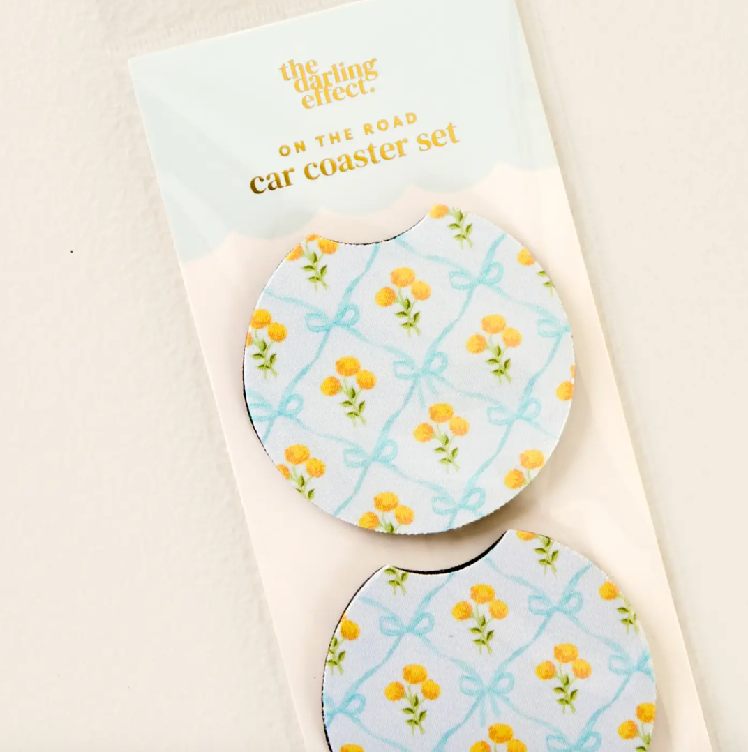 Keep your car clean and dry with our On the Road Car Coaster Set! This set of two matching coasters absorbs moisture to protect your car’s interior from spills and condensation. They’re easy to remove for cleaning and fit most standard cup holders. They’re a practical and stylish accessory for any car. Set of two matching coasters Absorbs moisture to protect your car can be easily removed. Fits most standard cup holders Dims: 2.75” diameter