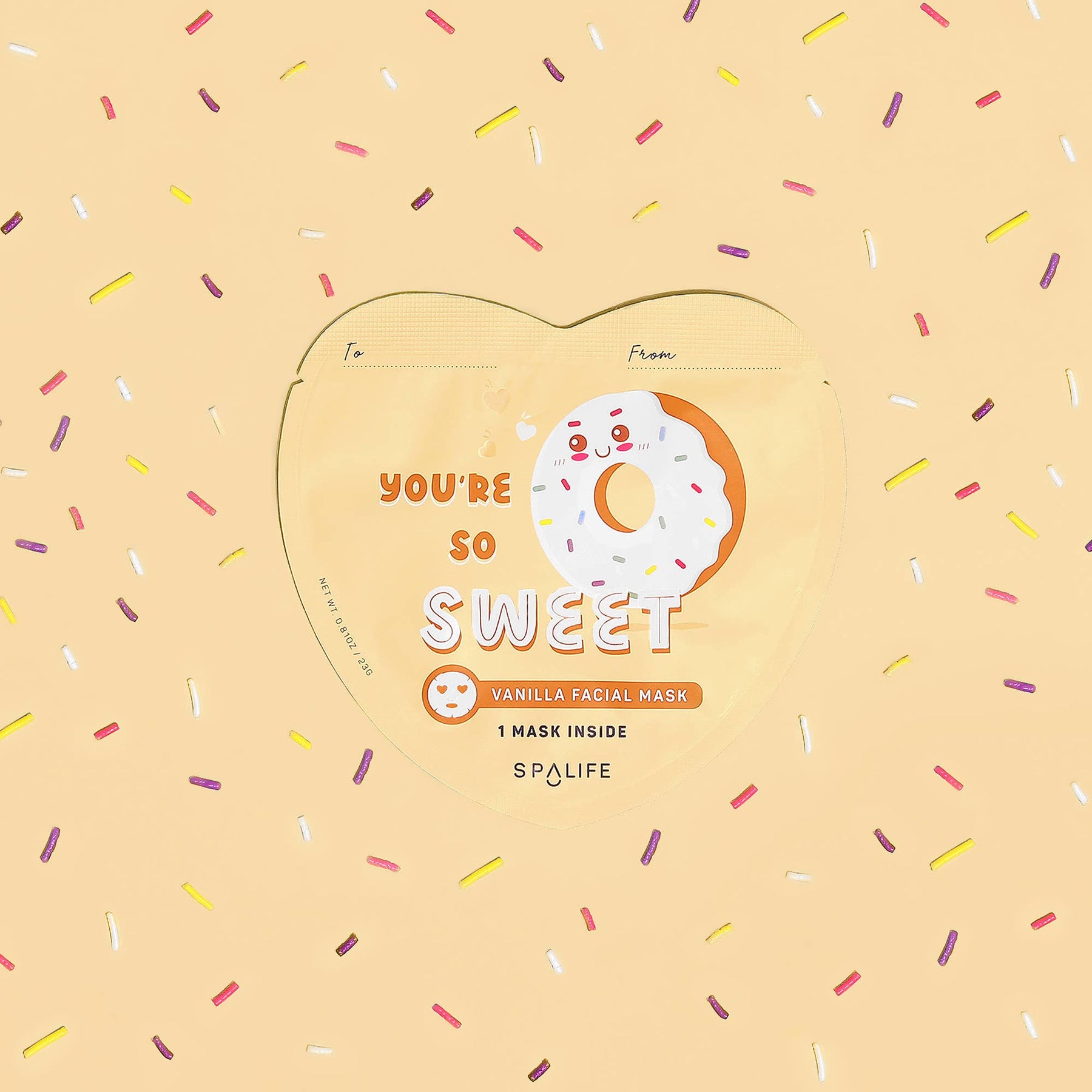 "Made for your sweetest friend, Spa Life's You're So Sweet Facial Mask is infused with soothing vanilla extract to help calm and hydrate for glazey, glowing skin. Vanilla-scented and gift-ready, this mask makes a sweet treat for a Valentine, Galentine, or even for yourself!